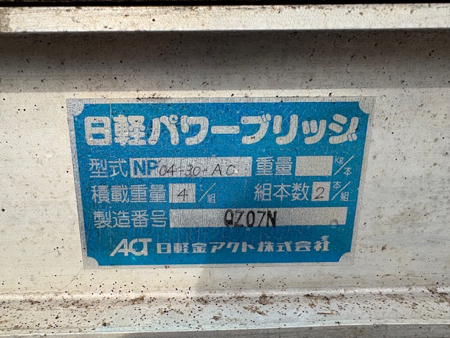 長い!アルミブリッジ 2本セット 4t 1本2t 日軽パワーブリッジ 木張り ラダーレール 道板 全長3000mm 兵庫県